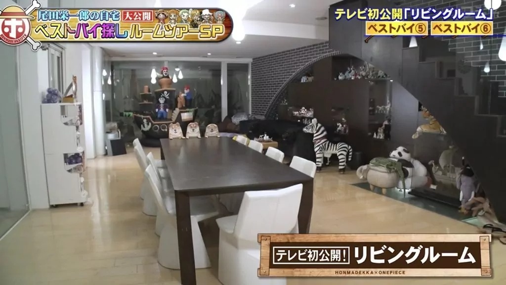 | La casa di Eiichiro Oda è piena di stranezze: se n'era parlato già tempo addietro in un'altra vecchia intervista, ed è un sollievo sapere che questo aspetto particolare ed ''eccentrico'' di Eiichiro Oda sia rimasto tale nel corso degli anni e nonostante tutto il successo. Il programma ''Honma Dekka!?'' ha collaborato con One Piece già nel 2019, quando fu rivelata per la prima volta la casa di Eiichiro Oda. Stavolta, in quest'intervista, presentata da Sanma, comico e amico dell'autore, sono stati discussi vari aspetti sul mangaka (tra i quali anche, sorprendentemente, la sua vita famigliare) e c'è stato modo di approfondire la sua opera più amata grazie alle informazioni date attraverso alcune importanti domande. Inoltre, sono stati mostrati anche i numerosi oggetti particolari che adornano l'interno della sua casa. Le immagini mostrate durante l'intervista (che troverete in calce alla notizia) fanno vedere agli spettatori i numerosi oggetti e decorazioni che adornano la casa, tra una giraffa a dimensione naturale, una statua di Bruce Lee in scala 1:1 (pagata circa 5 mila dollari), un omino gonfiabile gigante che saluta con il vento, una granata gigante e un drago sulle pareti del bagno che sputa acqua, con il design ideato da Oda stesso. Eiichiro Oda ha anche rivelato come deve rimanere distaccato dalla sua famiglia per potersi dedicare al disegno. Per questo motivo, si ricorda di dover passare il tempo con loro ad una frequenza di una volta la settimana, spiegando come ''altrimenti si sentirebbe troppo rilassato da non potersi concentrare''. Il bagno con un drago al suo interno, menzionato anche da Gosho Aoyama (autore di Detective Conan) pochissimo tempo addietro. I quaderni di Oda con disegni e note sulla storia, tra i quali uno con scritto sopra ''Wanokuni 9'' sulla copertina (notare la collezione lego dietro). Un dipinto del padre di Eiichiro Oda. Il suo nome è Seiichiro Oda, che significa ''energetico primogenito''; Eiichiro significa ''glorioso primogenito''. La firma di Eiichiro Oda è ispirata a quella del padre; essendo stato un artista, ha contribuito ad avvicinare Eiichiro Oda al disegno di manga. Il setup da gaming di Oda, un lanciafiamme portatile e una pistola da pirata. ![]() ![]() ![]() ![]() ![]() ![]() ![]()