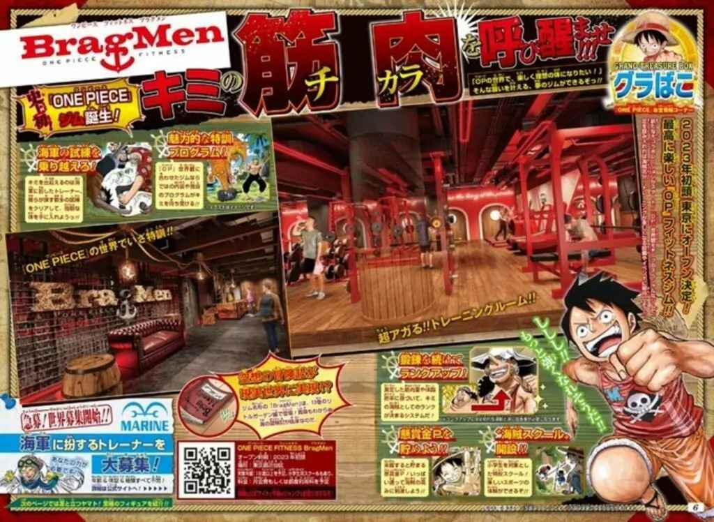 | Nel 2023 gli abitanti di Tokyo, potranno usufruire di una palestra dedicata interamente a One Piece, questa sarà situata più precisamente nel quartiere di Shibuya. L’entrata sarà permessa a tutti e sono previsti corsi anche per chi ha meno di 18 anni, mentre i personal trainer saranno vestiti come gli ufficiali della Marina. La palestra sarà dotata di un sistema di ''rank-up'' e di punti che aumenteranno per ogni visita effettuata e che potrebbe offrire alcuni premi speciali ai primi classificati. In futuro ci potranno essere sia i programmi di allenamento sia altre informazioni utili. Con il coincidere del 25° anniversario del manga e dell’uscita del film ONE PIECE RED il Giappone proporrà anche altre trovate di questo tipo, come nuove attrazioni agli Universal Studios Japan. ![]() |
